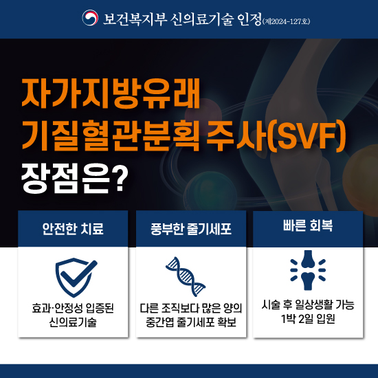 | [신의료기술] 관절염 주사치료, 자가지방유래 기질혈관분획 실시! | |||||