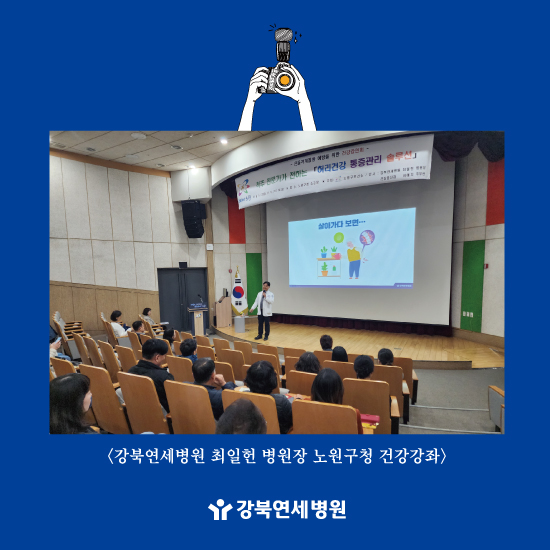 강북연세병원 척추클리닉 최일헌 병원장이 11월 4일 노원구청 6층 소강당에서 구청 및 보건소 직원 100여명을 대상으로 건강 강좌를 펼쳤습니다.