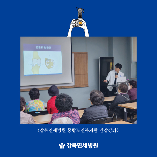강북연세병원 김동혁 원장이 지난 11월 24일, 중랑노인종합복지관을 방문하여 퇴행성 관절염에 대한 건강강좌를 진행했습니다.