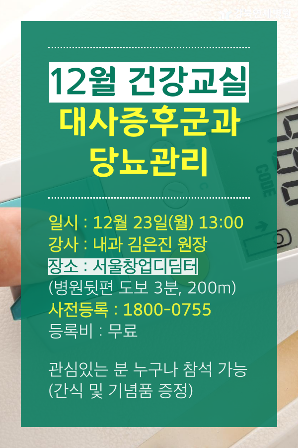 | 12월 23일, [대사증후군과 당뇨관리] 건강강좌 안내 | |||||